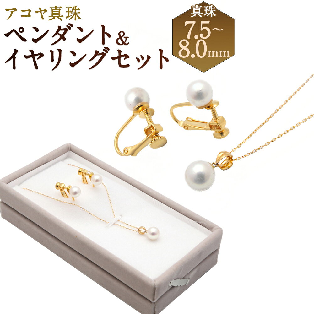 【ふるさと納税】アコヤ真珠 ペンダント&イヤリングセット 真珠7.5〜8mm チェーン ホワイトゴールド/K18 ネックレス アクセサリー ピアス あこや真珠 真珠 長崎県 ギフト 贈り物 プレゼント 送料無料
